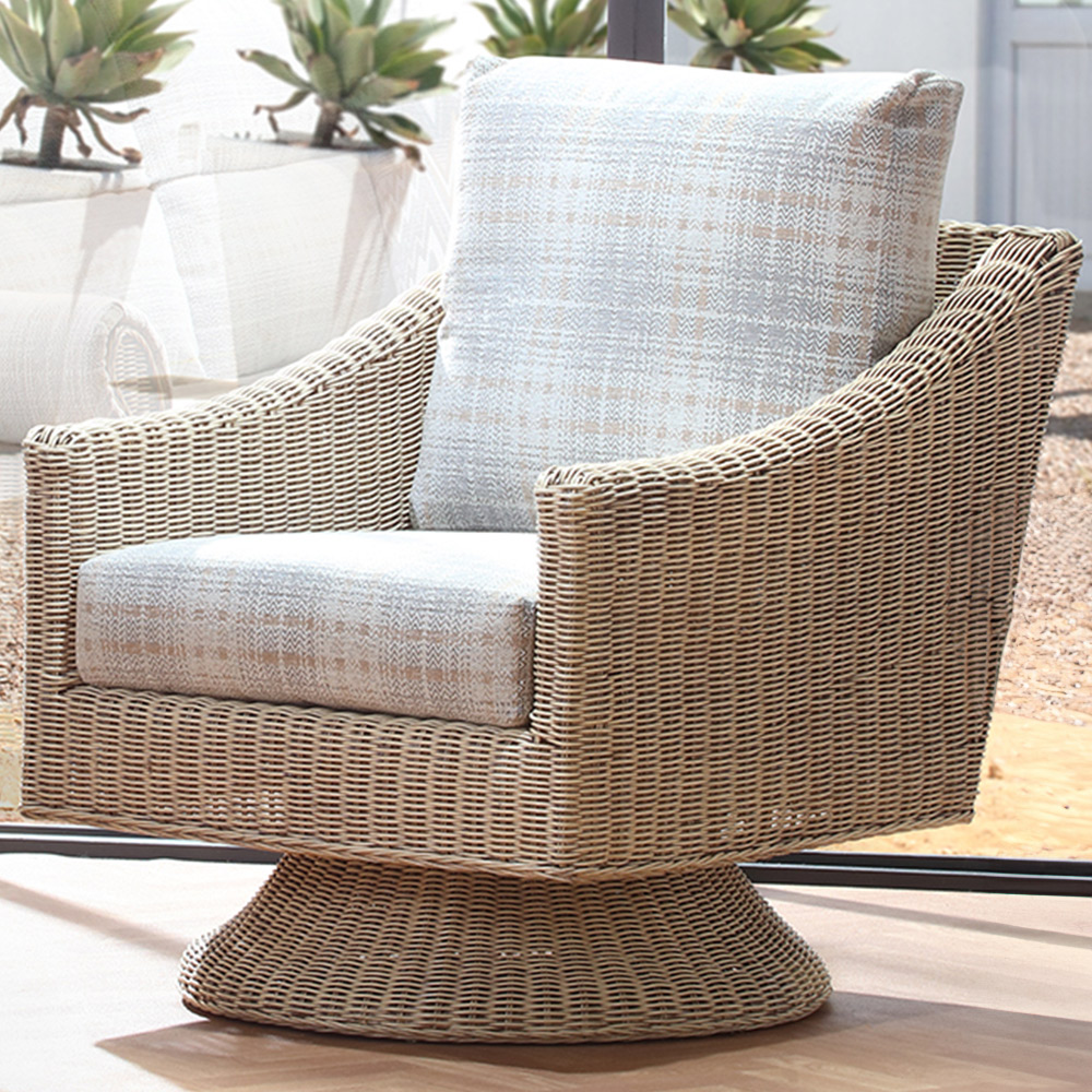 Desser Clifton Natural Rattan Check Fabric Swivel Chair
