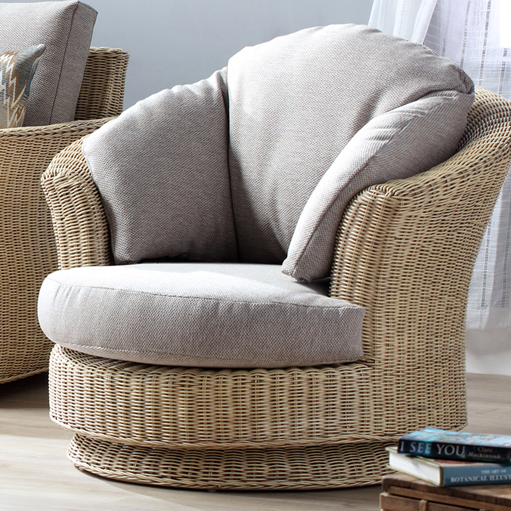 Desser Corsica Lyon Natural Rattan Biscuit Fabric Swivel Chair