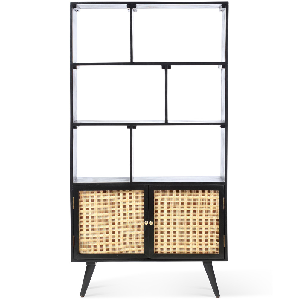 Desser Manhattan 2 Door 6 Shelf Black Rattan and Mango Wood Bookcase