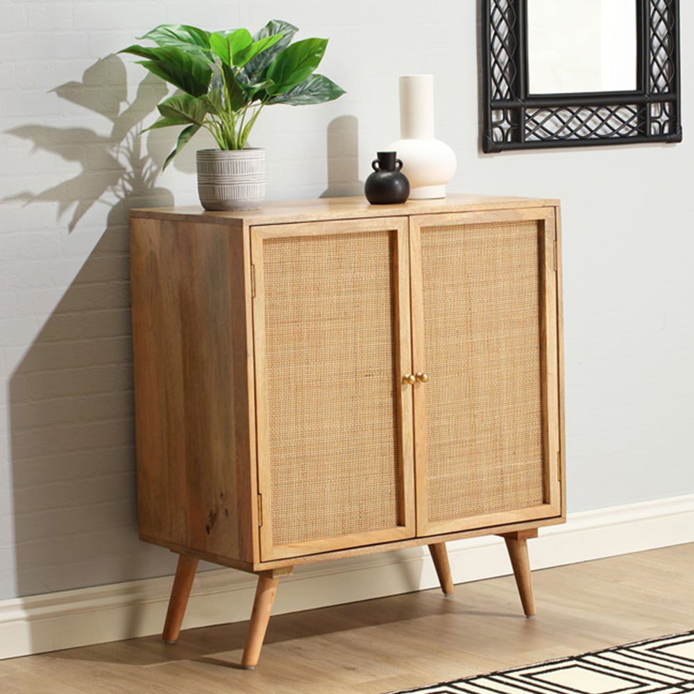 Desser Manhattan 2 Door Natural Rattan and Mango Wood Wine Cabinet