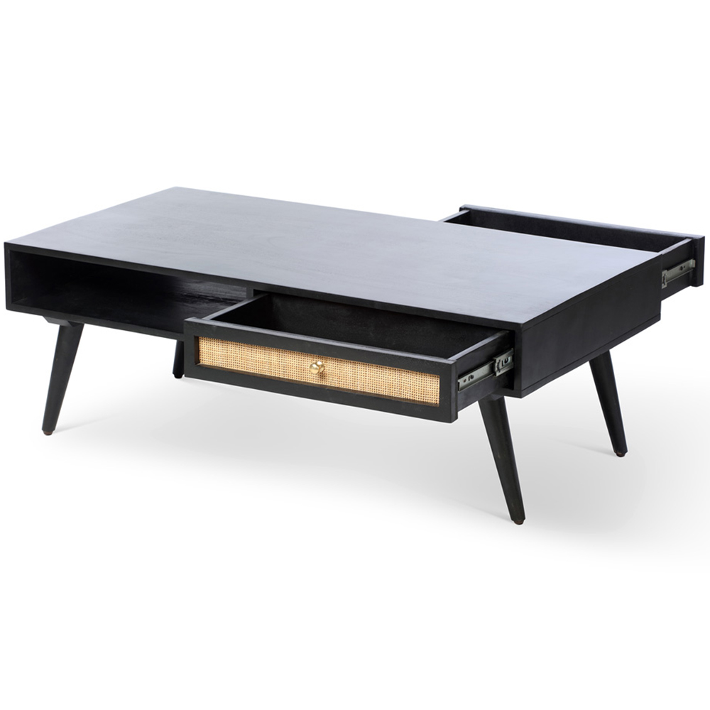 Desser Manhattan 2 Drawer Single Shelf Black Rattan Coffee Table