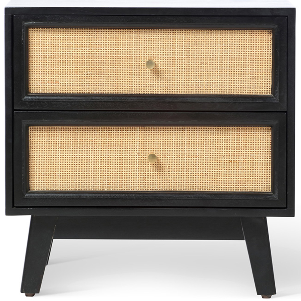 Desser Venice 2 Drawer Black Rattan and Mango Wood Bedside Table