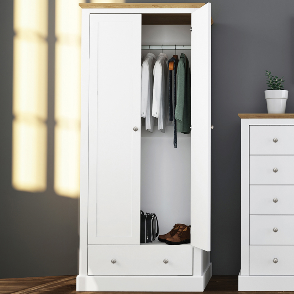 Devon 2 Door Single Drawer White Wardrobe