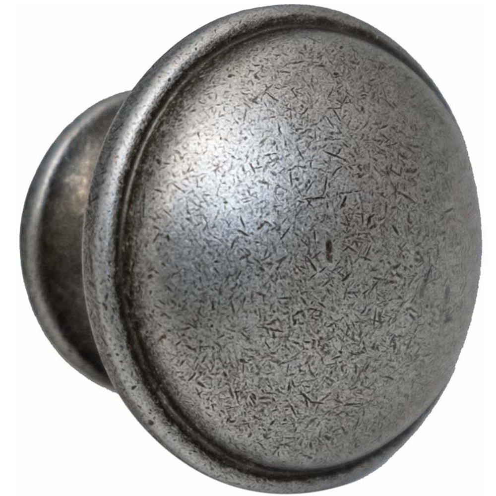 Circular design, pewter finish. 36mm diameter. A contemporary classic, this handle offers a stylish upgrade for any kitchen.
