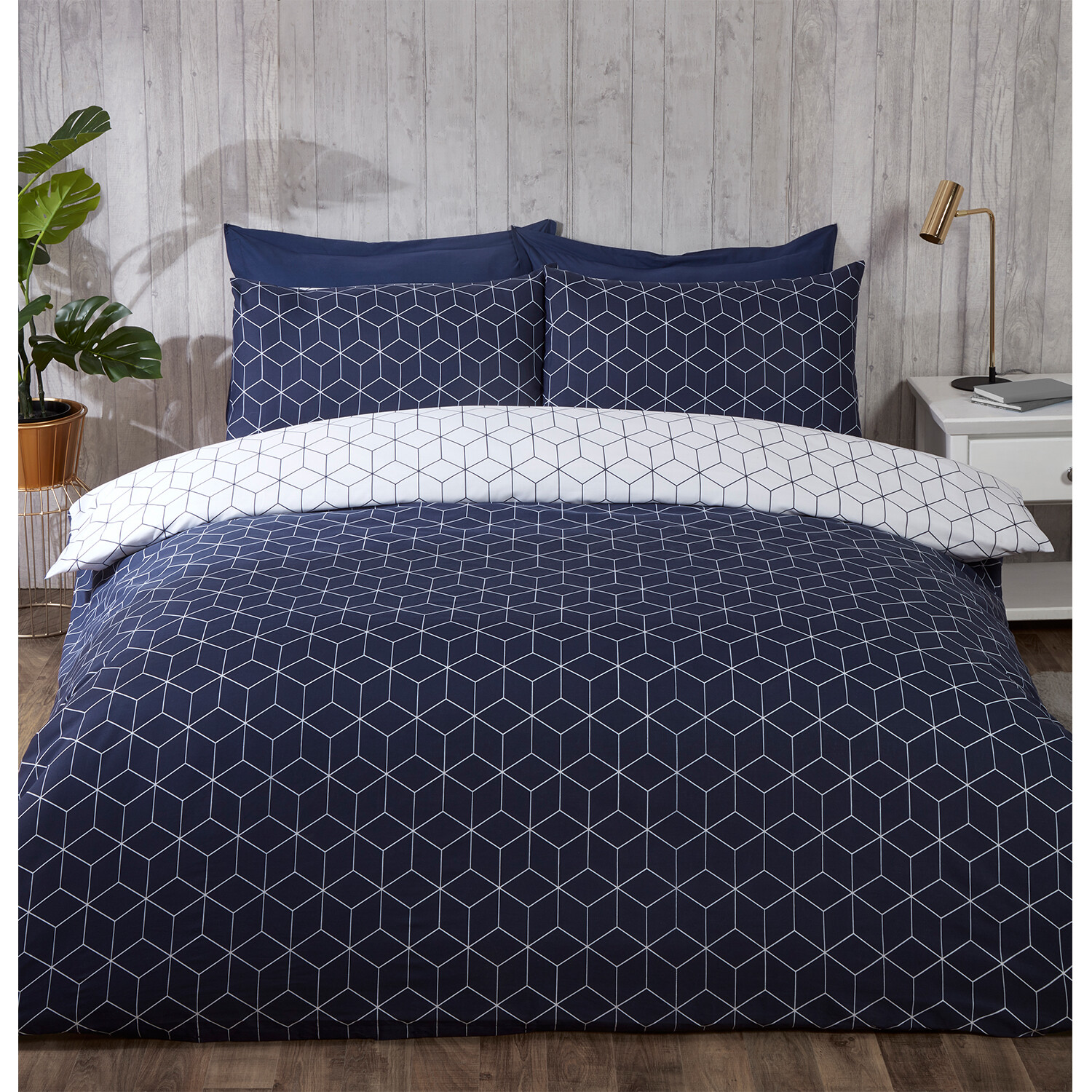 Divante Apollo Double Navy Geo Duvet Cover and Pillowcase Set
