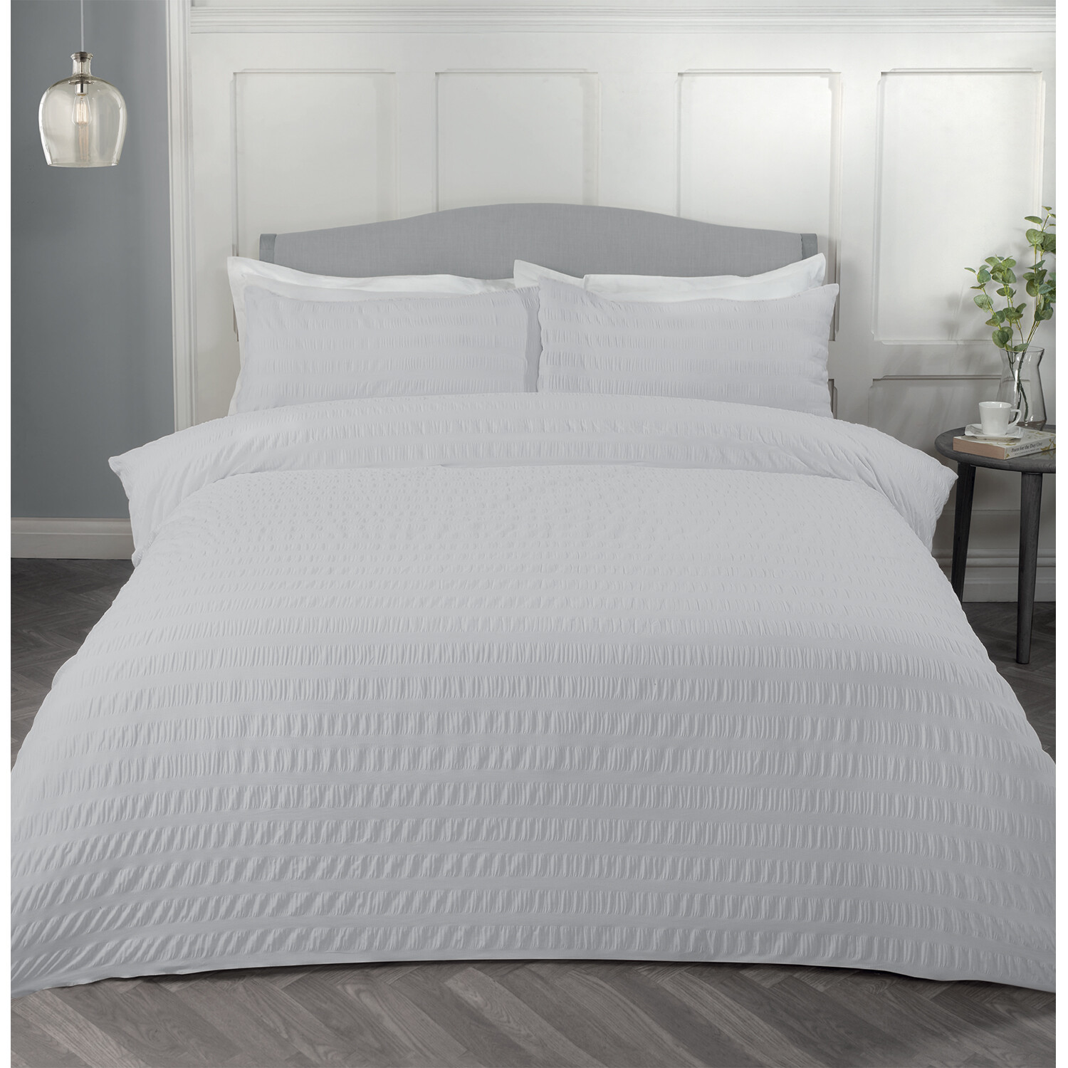This Seersucker duvet set brings understated elegance to your bedroom. Its classic striped, textured design in a contemporary colour offers a modern feel, while the rich cotton ensures comfortable nights sleep. The design easily complements existing décor and can be further enhanced with accent cushions or throws for added coziness.
