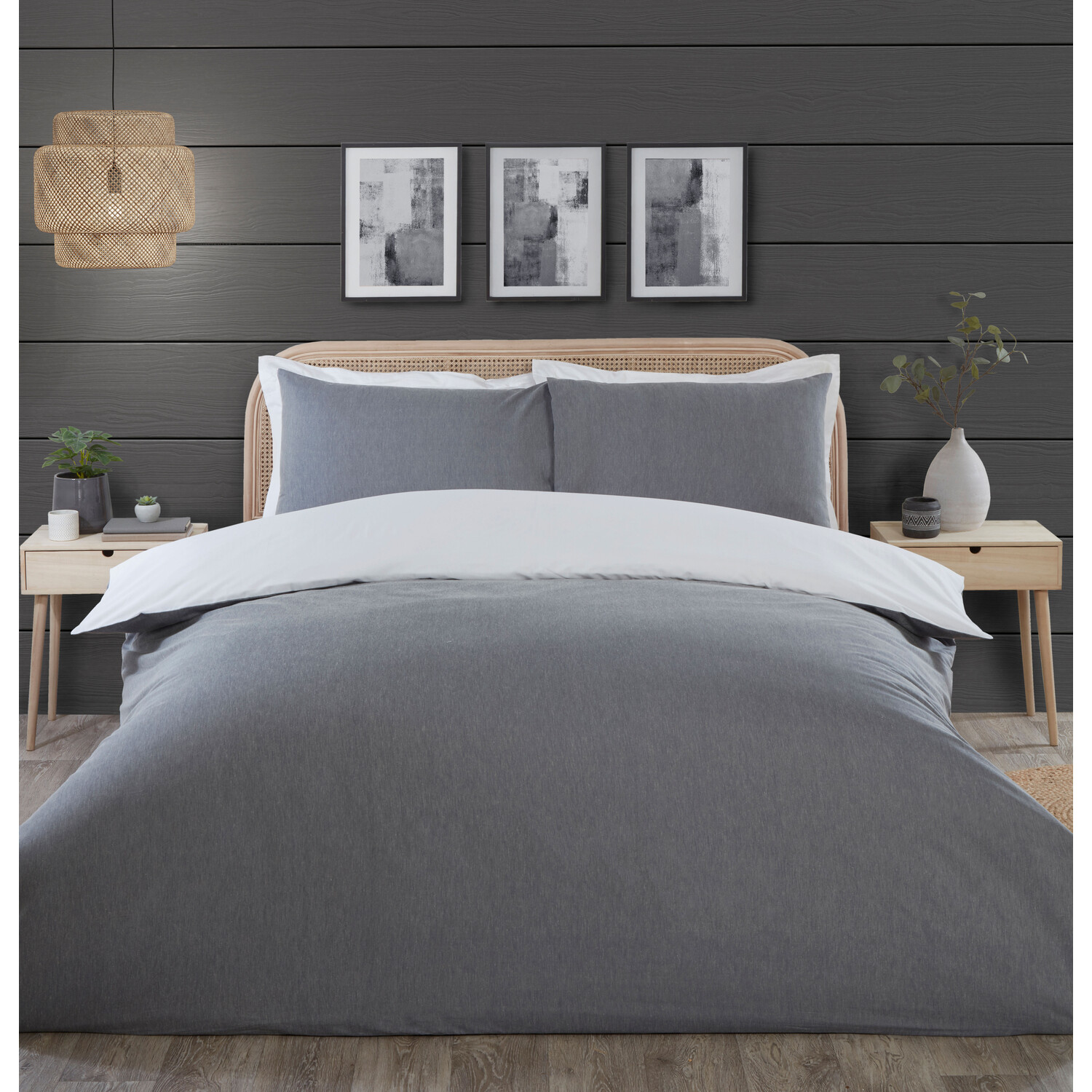Experience tranquil nights with the Hendon Chambray Duvet Cover and Pillowcase Set. This exclusive Divante design, available at The Range, introduces a calming presence to your bedroom. One side showcases a sophisticated solid colour, while the reverse offers a crisp white alternative for a brighter feel. Crafted from comfortable polycotton, this reversible set ensures stylish slumber.