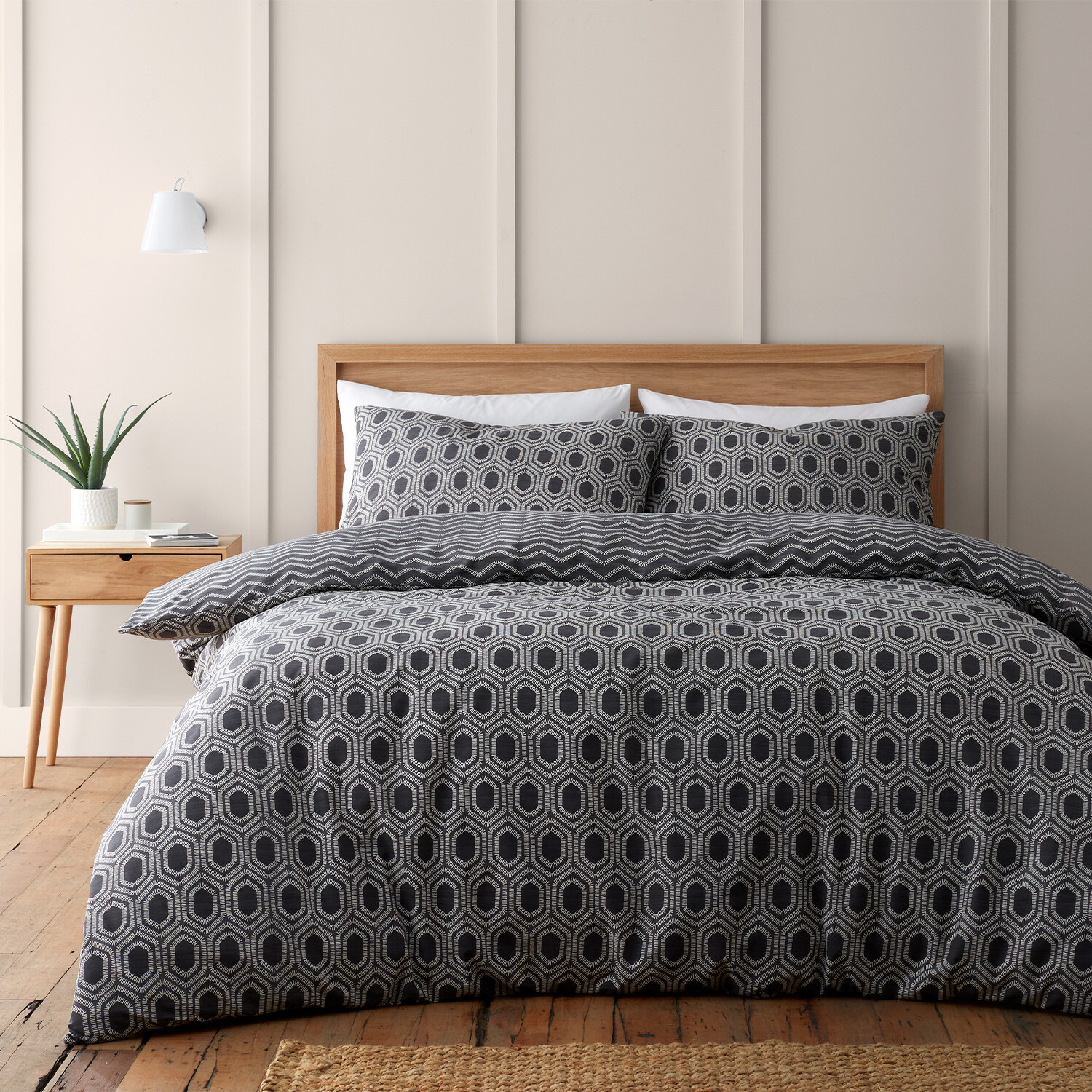 Divante Iona Geo Duvet Cover and Pillowcase Set - Black / Double