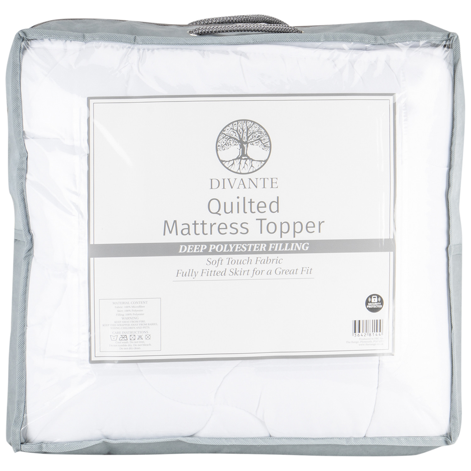 Experience luxurious comfort with the Divante Quilted Mattress Topper. Its deep microfibre filling and soft-touch fabric create a divinely soft sleep surface. Designed for easy placement atop your existing mattress, it features an elasticated skirt for a secure and snug fit.