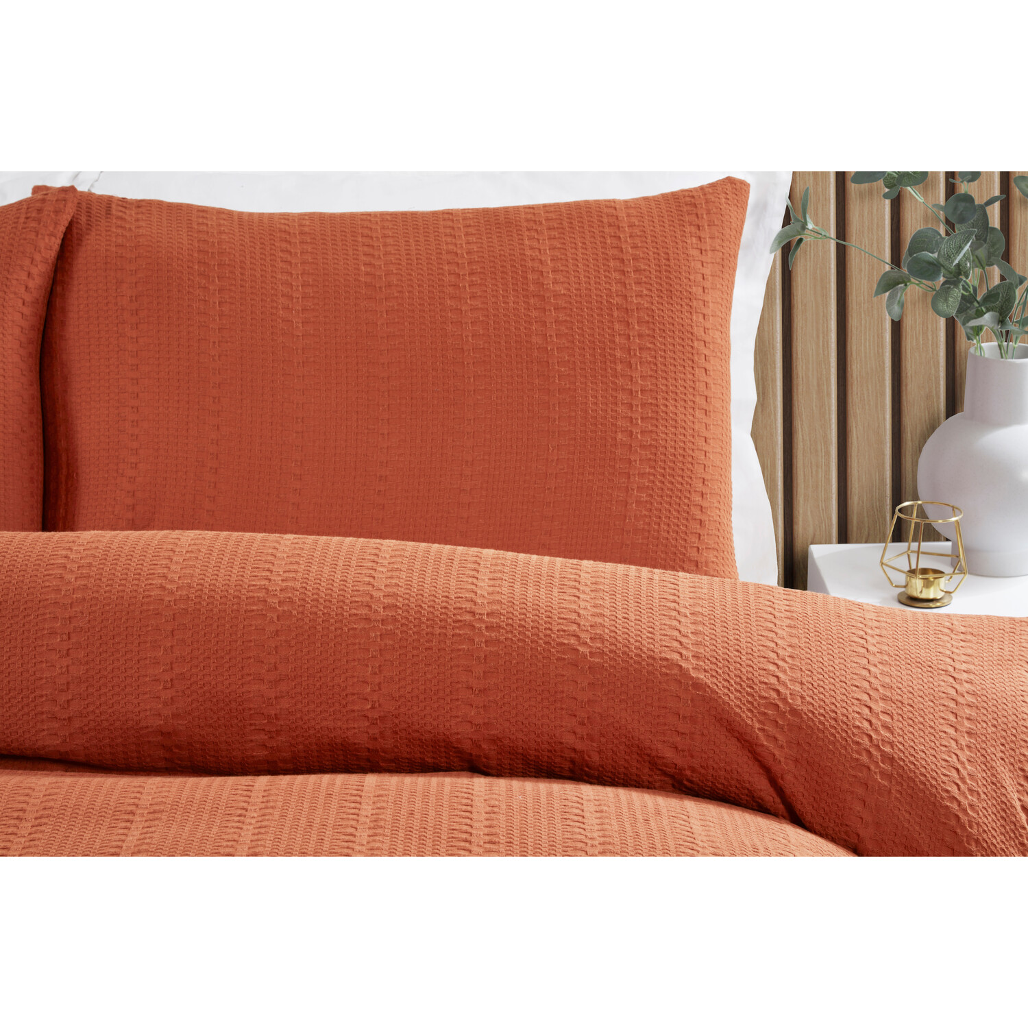 Divante Merida Super King Rust Waffle Stripe Duvet Set