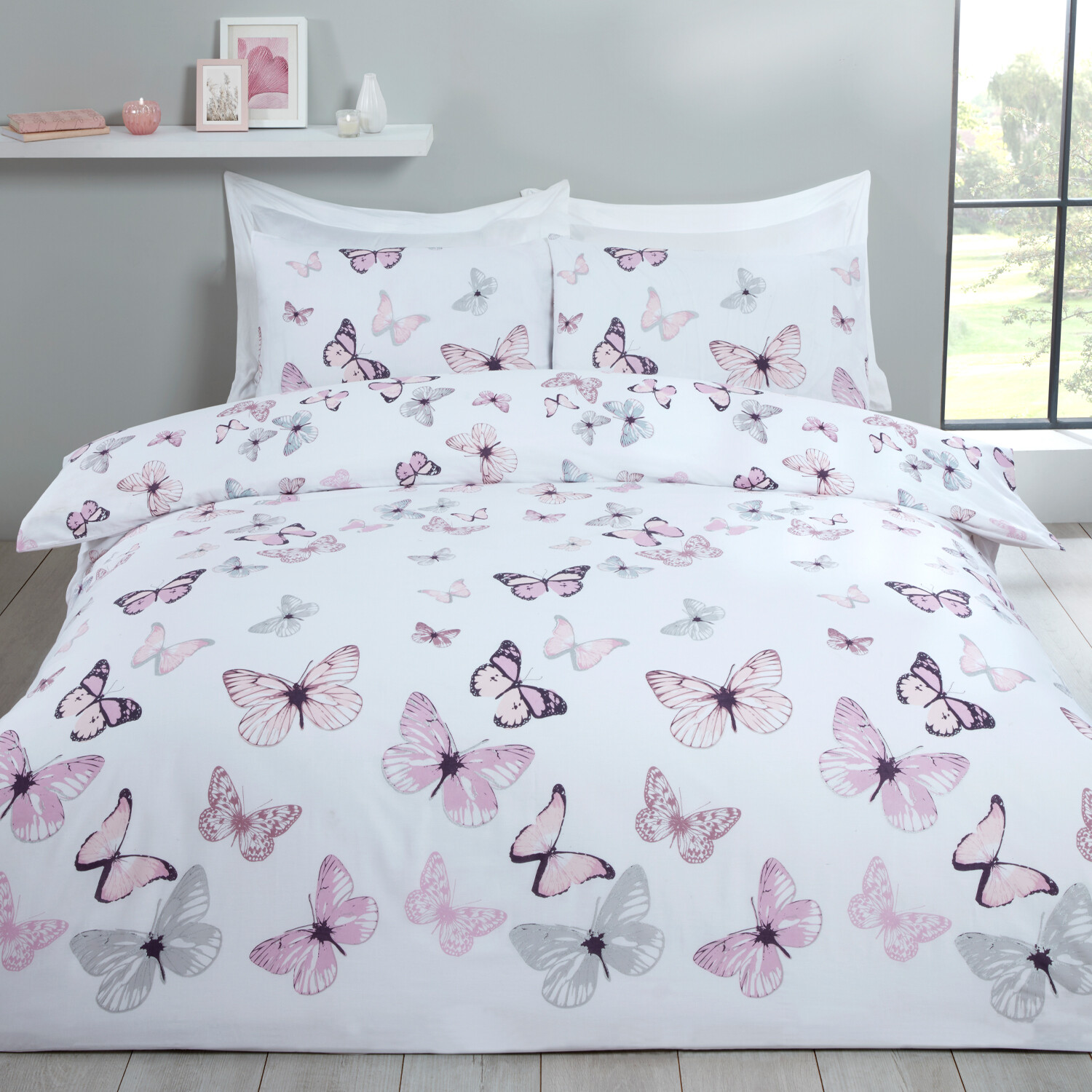 Bring a cheerful and pretty vibe to your bedroom all year round with the Neveah Butterfly Duvet and Pillowcase Set. Its beautiful pink and blue butterfly print creates a delightful atmosphere. Crafted from a comfortable and durable polycotton blend, this duvet set ensures a restful night's sleep.
