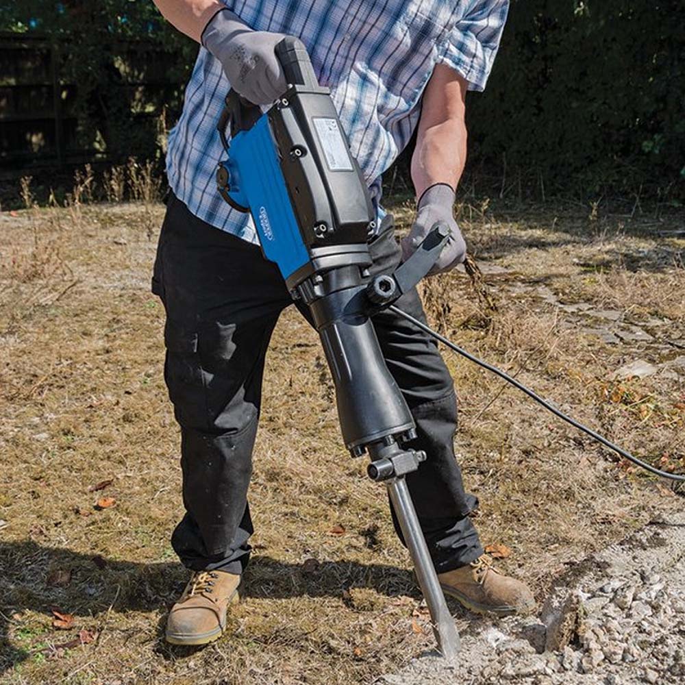 This 110V Draper Hex Breaker delivers powerful demolition performance. Equipped with a side handle and a comprehensive set of pointed and flat chisels, it's ready for any job. The 3.2-meter cable with BS plug ensures ample reach. Operating at 1500W, with 45J impact joules and a max impact rate of 1900 bpm, this 14kg unit is built to last. Voltage: 110V.