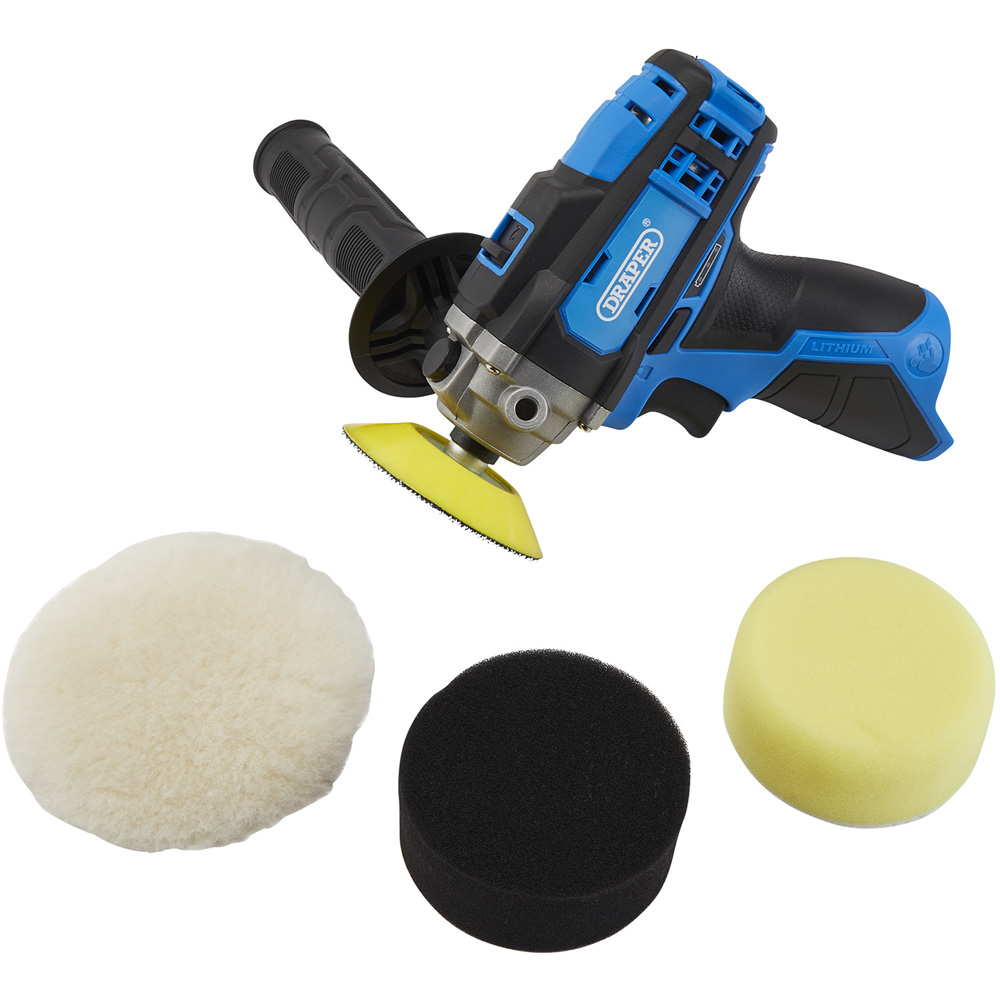 The Draper 12V Cordless Car Polisher is a powerful and versatile tool for professionals and DIY enthusiasts alike. Its compact and lightweight design, coupled with easy-to-use controls, ensures efficient and effortless polishing. Featuring a 2-speed gearbox and variable speed with an electronic brake, you'll have precise control over the polishing process. A spindle lock and safety lock button add to the tool's safety features, while an LED battery charge indicator keeps you informed. Supplied with an auxiliary handle for added comfort and control, plus a 110mm wool polishing pad, 80mm soft and medium sponges, and a 74mm backing pad, you're ready to tackle any polishing job. This polisher is part of the 12V interchangeable multi-tool battery system, allowing you to use one battery across the entire 12V series. Batteries and chargers are sold separately.