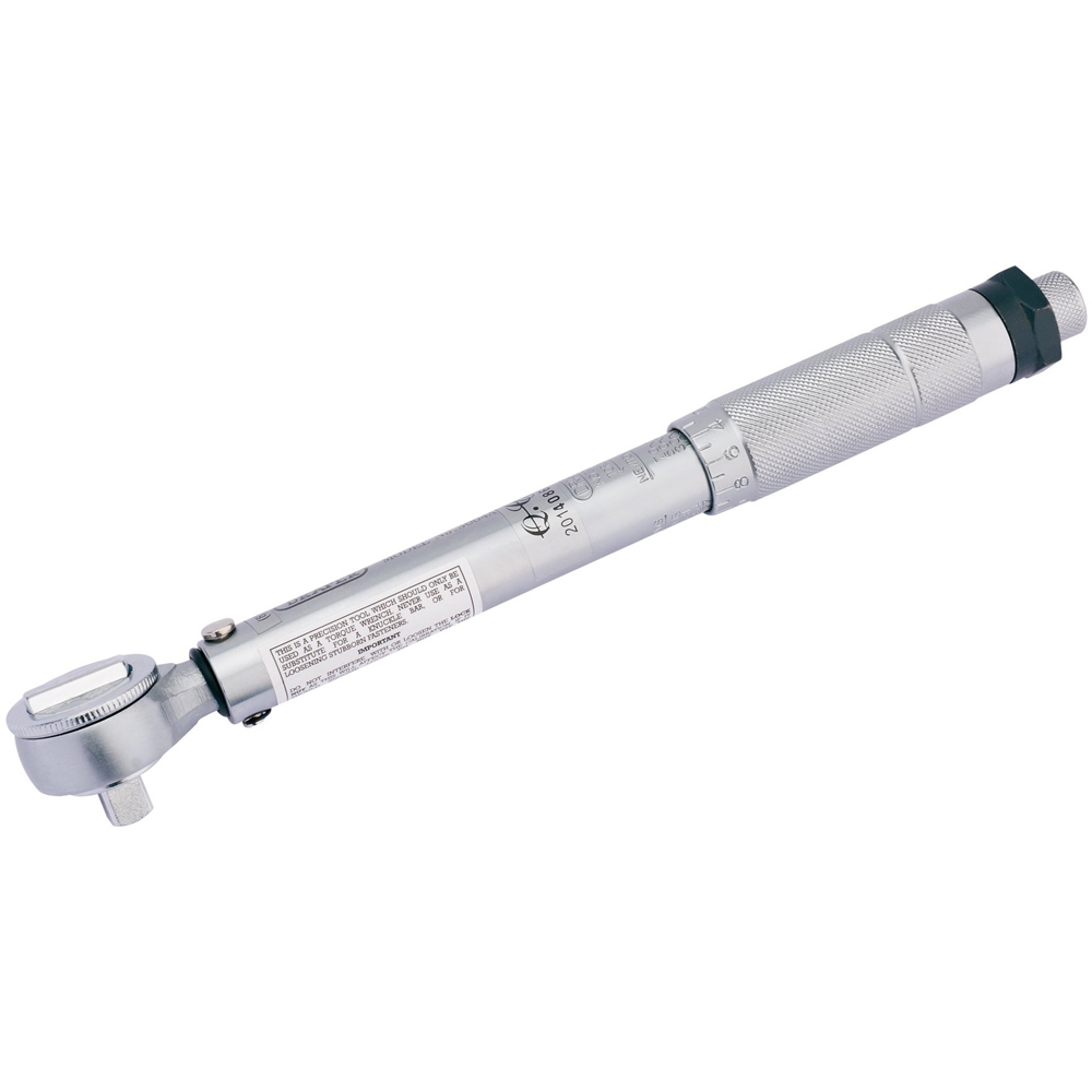 The Draper 3/8 inch square drive ratchet torque wrench is perfect for a wide range of applications. The wrench head displays Nm and lb-in scales for easy readability. A micrometre sleeve enables precise torque presetting, an audible click signals when the set torque is reached, and the wrench releases. The wrench has a range of 10-80 Nm / 88.5-708 lb-in and is 280 mm long. A calibration certificate and protective blow-mould case are included.