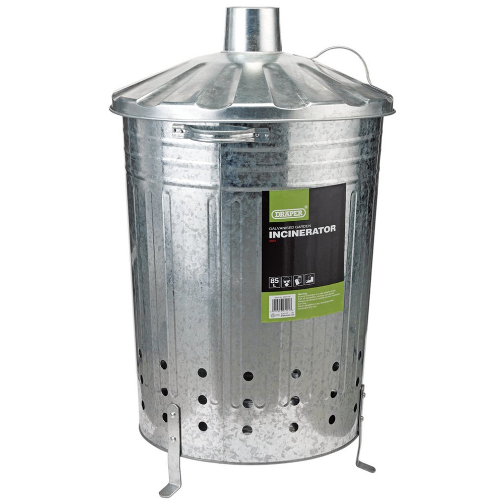 The Draper Galvanised Garden Incinerator is perfect for easy disposal of garden and household waste. Made from robust galvanised steel, this 85L incinerator boasts a chimney lid for efficient combustion. Built-in handles and strategically placed side ventilation holes ensure optimal fire control and ease of use. Standing 800mm tall (including lid and legs), it's a practical and reliable choice for daily garden upkeep.