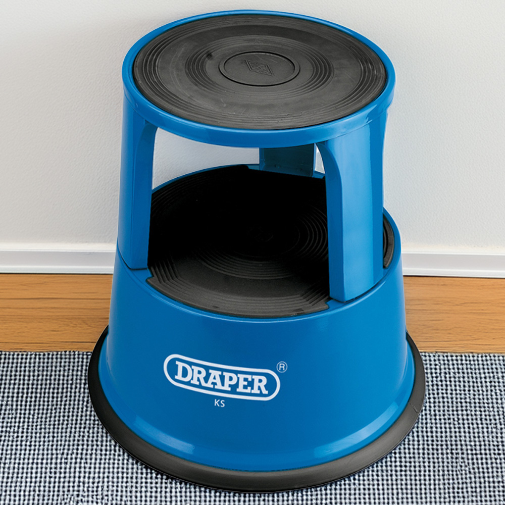 Reach those higher shelves with the Draper Metal Kickstool, built for reliable support in any office environment. This two-level kickstool uses a unique spring suspension system, providing instant stability when weight is applied for increased safety. With a 150kg maximum weight capacity and fitted with three castor wheels, it offers effortless mobility and convenience. Standing at a height of 440mm, it's a practical solution for accessing those just-out-of-reach places, while complying with the Working at Height Regulations 2005.