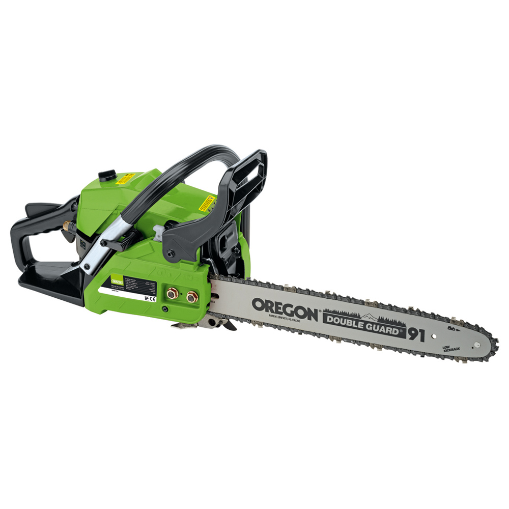 Experience the power and precision of the Petrol Chainsaw featuring a robust 37cc 2-stroke engine, expertly paired with a 400mm Oregon chain and bar. This top-handled chainsaw is designed for efficient lopping and felling of branches, especially when working at height. With its auto-adjustable chain lubrication system, you can enjoy seamless operation without the hassle of constant maintenance. Safety is paramount, and this chainsaw comes equipped with a rapid reaction chain brake and a safety throttle lever, ensuring secure handling during use. The anti-vibration handle enhances comfort, allowing you to work longer without fatigue. Included with your purchase are essential accessories: a blade sheath, a 2-stroke mixing bottle, a 14-19mm box spanner, a screwdriver, and a chainsaw file, all tailored for optimal performance. Specifications include an engine capacity of 37.2cc, an output of 1300W (1.73HP), a maximum engine speed of 11,000 r/min, a chain pitch of 9.525mm, a chain gauge of 1.27mm, a fuel tank capacity of 310ml, an oil tank capacity of 210ml, and a weight of 6kg. This chainsaw is designed for use when working at height, making it a reliable addition to your toolkit for elevated tasks.