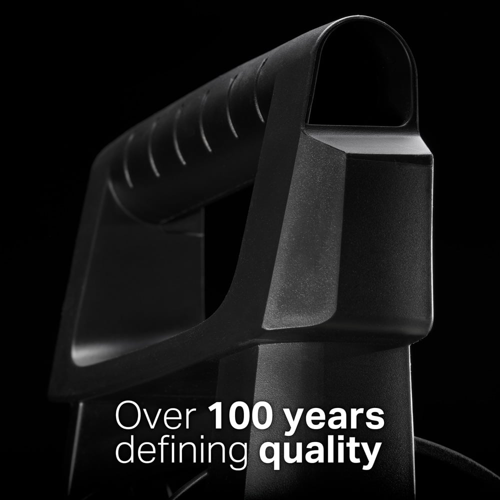 Effortlessly clean larger areas with the 2200W pressure washer. This versatile model boasts a comfortable carry handle and large wheels for easy manoeuvrability. Its 6-meter high-pressure hose conveniently winds onto an integrated reel. The integrated total stop system conserves water and extends the unit's lifespan by automatically cutting power when the trigger is released. Delivers 1595psi (110 bar) working pressure and up to 2393psi (165 bar) maximum pressure, with a working flow rate of 6.3l/min and a maximum flow rate of 8.2l/min. Includes a 5m power cable and weighs 11kg.