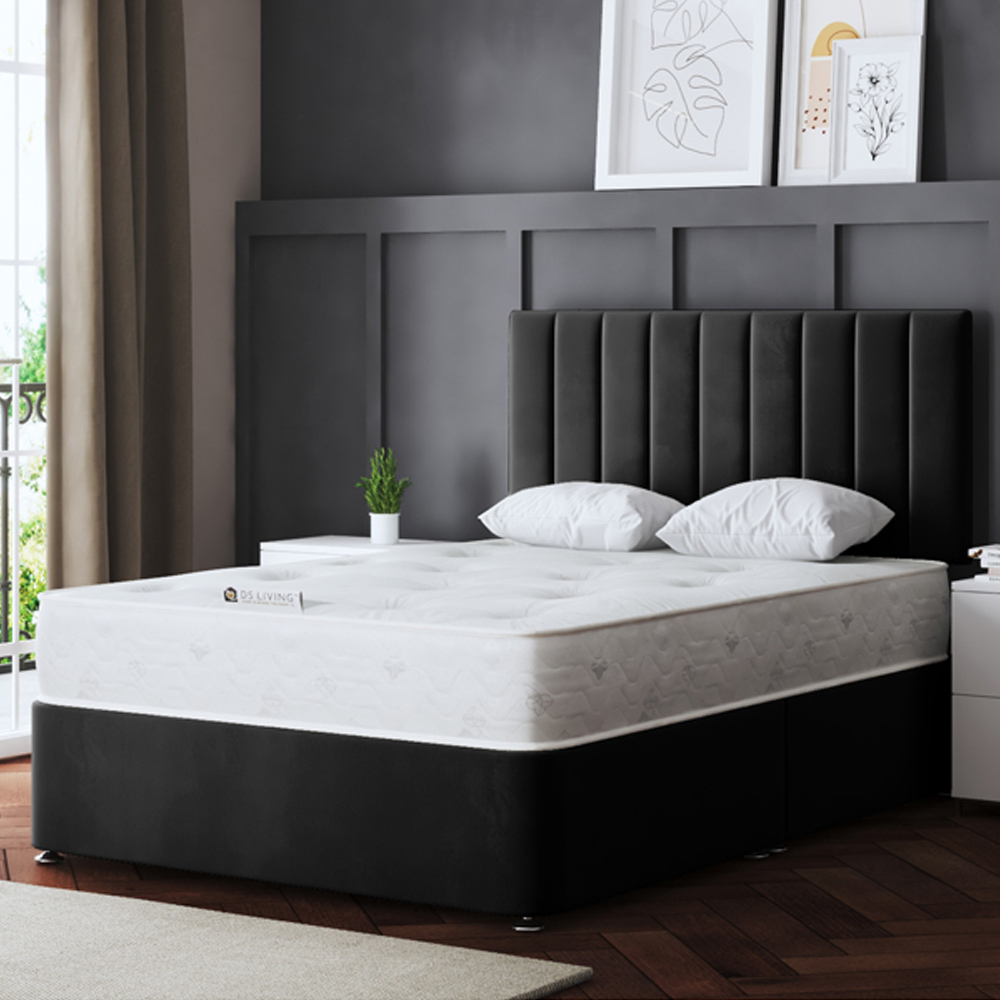 DS Living Amelia King Size Black Upholstered Panel Divan Bed with 2 Drawer