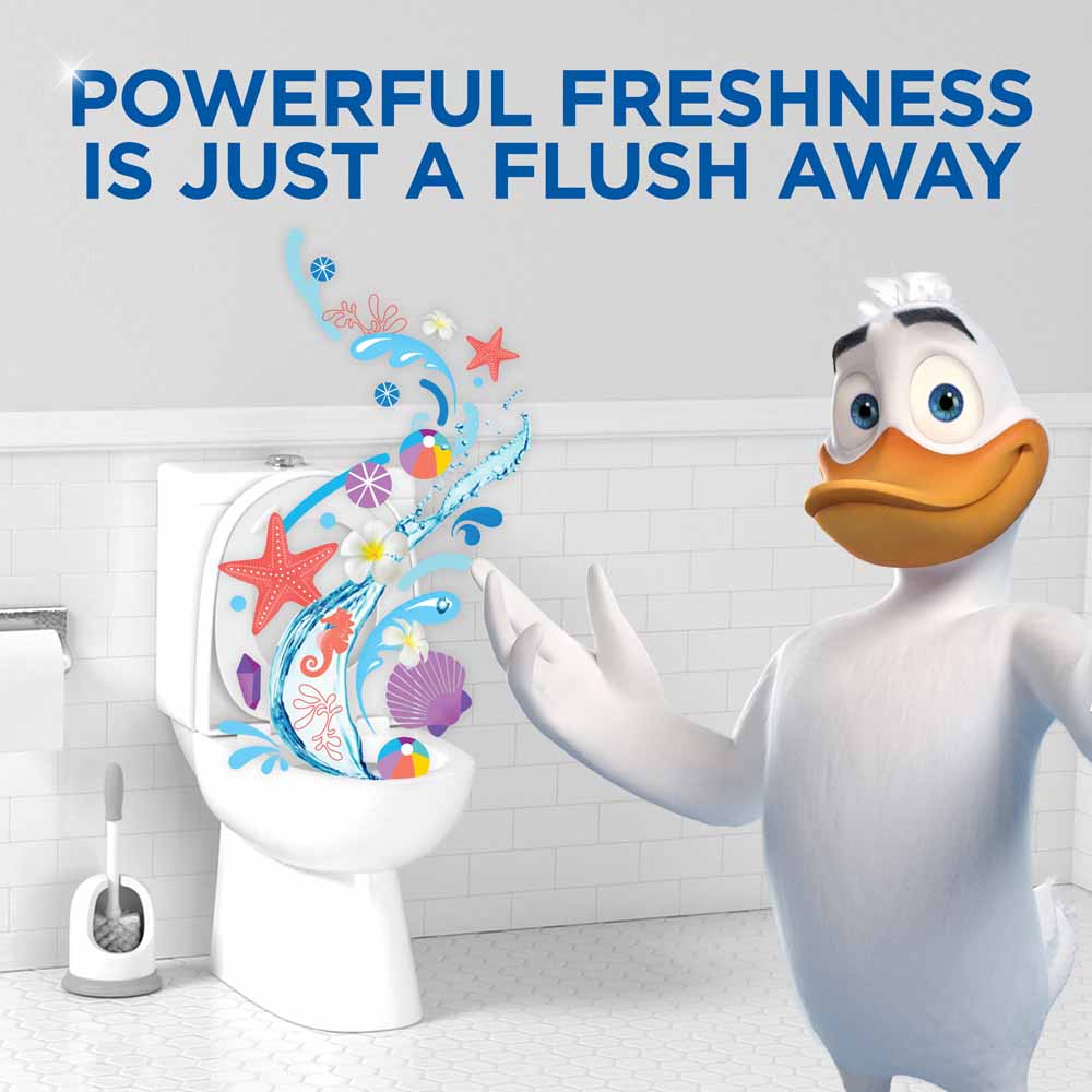 Give your toilet bowl a burst of long-lasting freshness with Duck Active Clean Marine. This clever toilet rim block releases a fragrant, foam-powered clean with every flush. Simply clip it under the rim, and Active Clean transforms each flush into a rush of cleansing bubbles, maintaining a clean and wonderfully Marine-scented toilet for up to 3 weeks. Each pack contains 2 Active Clean toilet rim blocks. Always read the packaging before use.