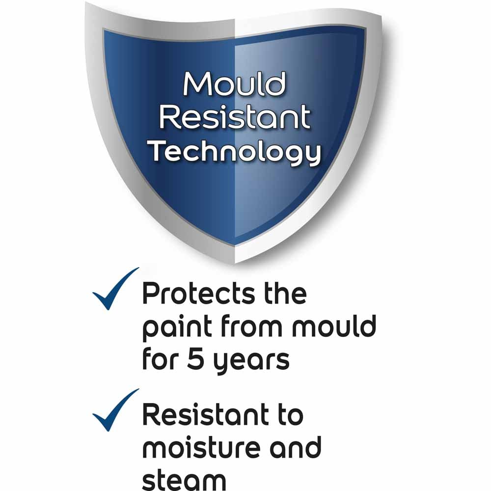 This exceptional Pure Brilliant White paint is perfect for bathrooms. Dulux Bathroom+ Soft Sheen',s tough formula resists moisture and steam. MouldTec technology protects against mould growth for five years. It',s water-based, low in VOCs, and a single 2.5L tin covers up to 35 square metres. Keep out of reach of children. Always read the instructions before use.