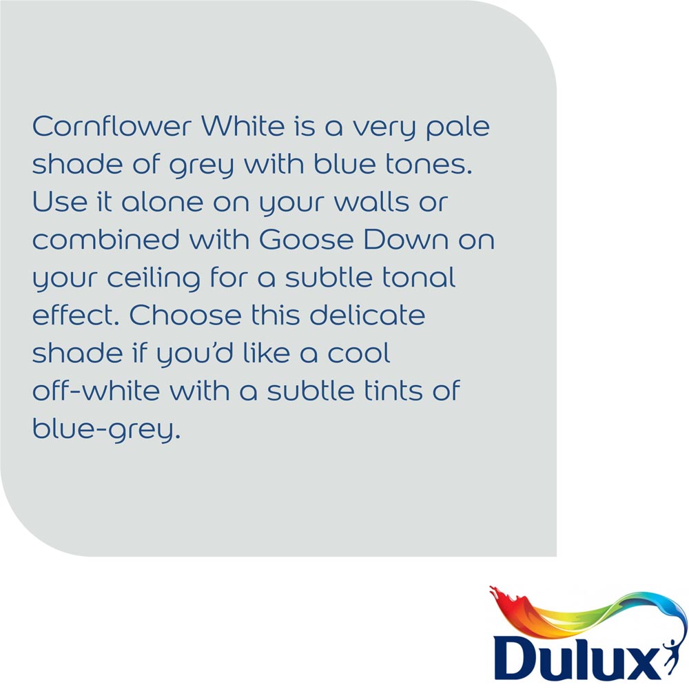 Dulux Matt is a smooth and creamy emulsion paint for use on walls and ceilings which is ideal for a modern, flat finish. Chromalock technology creates an invisible protective barrier around the colour on your walls, protecting from the wear and tear of everyday life and bringing you colour that lasts. Coverage is 16 square metres per liter. Leave 2-4 hours to dry between coats.