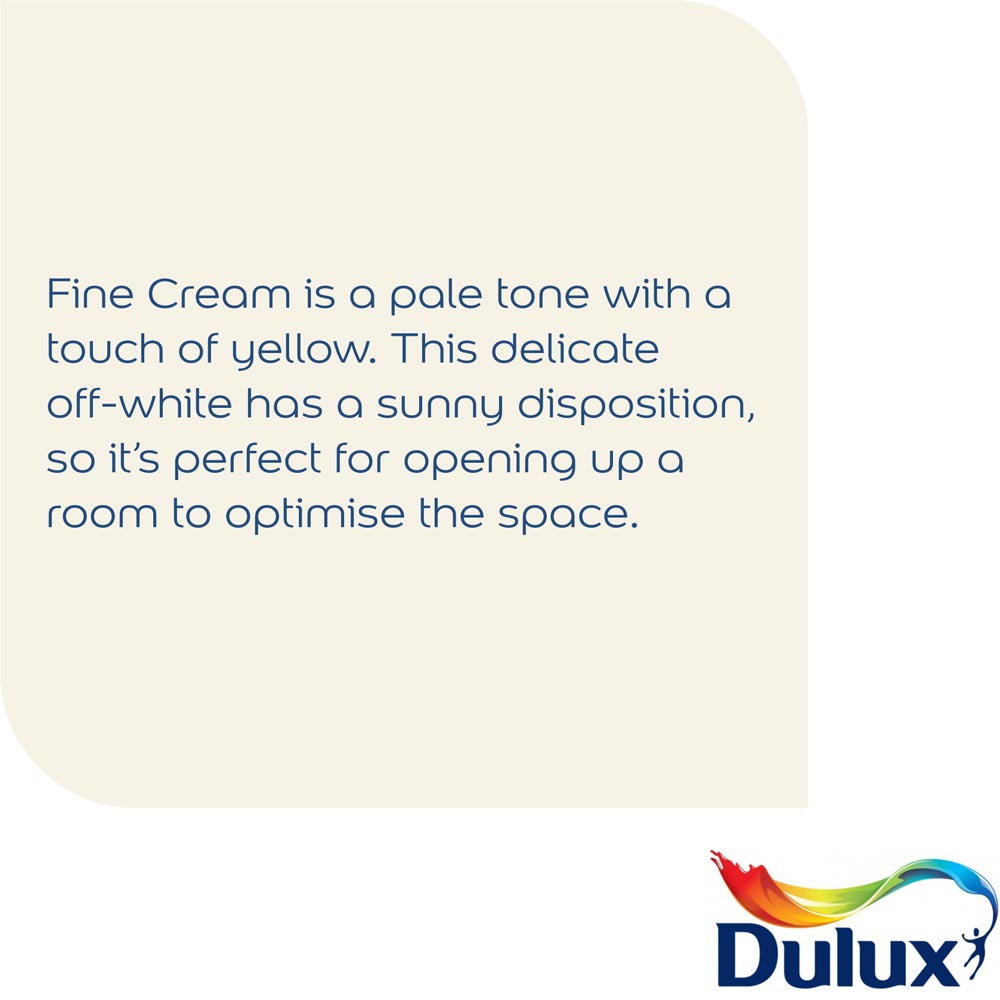 This luxurious Dulux Matt emulsion paint delivers a smooth, creamy finish to your walls and ceilings. The water-based formula is easy to apply, providing a modern, flat matt look with excellent coverage of 14 square meters per litre. Choose the elegant Fine Cream shade in a convenient 5L size.