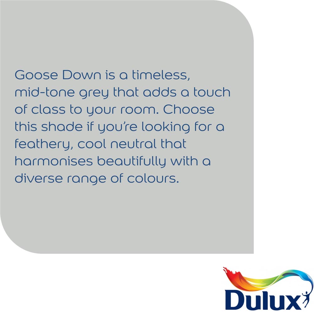 Give your walls an elegant makeover with this Dulux Silk paint. It is a smooth and creamy emulsion paint to cover walls and ceilings with a unique, creamy texture finish. Easy to apply, the water-based paint is ideal for a delicate, shiny silk finish. Coverage is 14 square metres per liter. Shade: Goose Down. Size: 5L.
