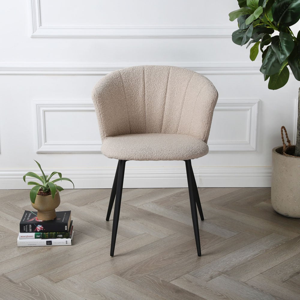 Add a touch of vintage charm and effortless style to your home with the Dunelm Beige Boucle Accent Chair. Its soft boucle upholstery, reminiscent of a beloved teddy bear, offers exceptional comfort. The stylish combination of beige fabric and black powder-coated legs creates a timeless appeal, perfect for living rooms, dining areas, or bedrooms. This versatile occasional chair is easily assembled and boasts a robust 100kg weight capacity, ensuring lasting durability. Enjoy the inviting cosiness this chair brings to your space.