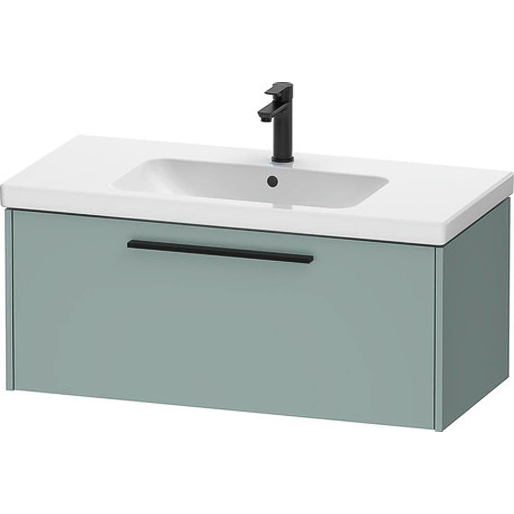 Duravit D-Code Fjord Green Single Drawer Wall Hung Vanity Unit with Black Handle 984 x 460mm