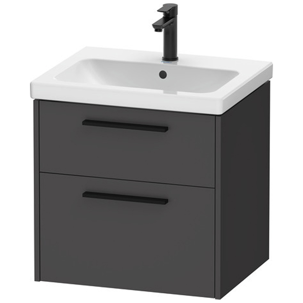 Duravit D-Code Matt Graphite 2 Drawer Wall Hung Vanity Unit with Black Handle 584 x 460mm