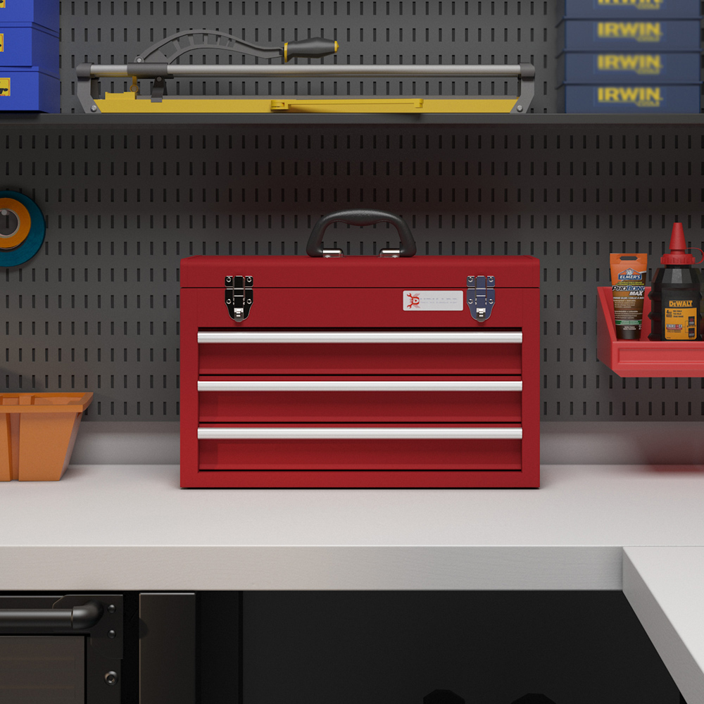 Durhand 3 Drawer Red Lockable Metal Tool Chest