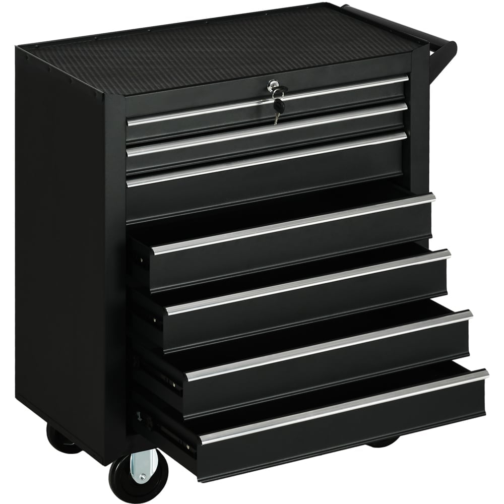 DURHAND 7 Drawer Black Tool Chest of Drawers with Wheels