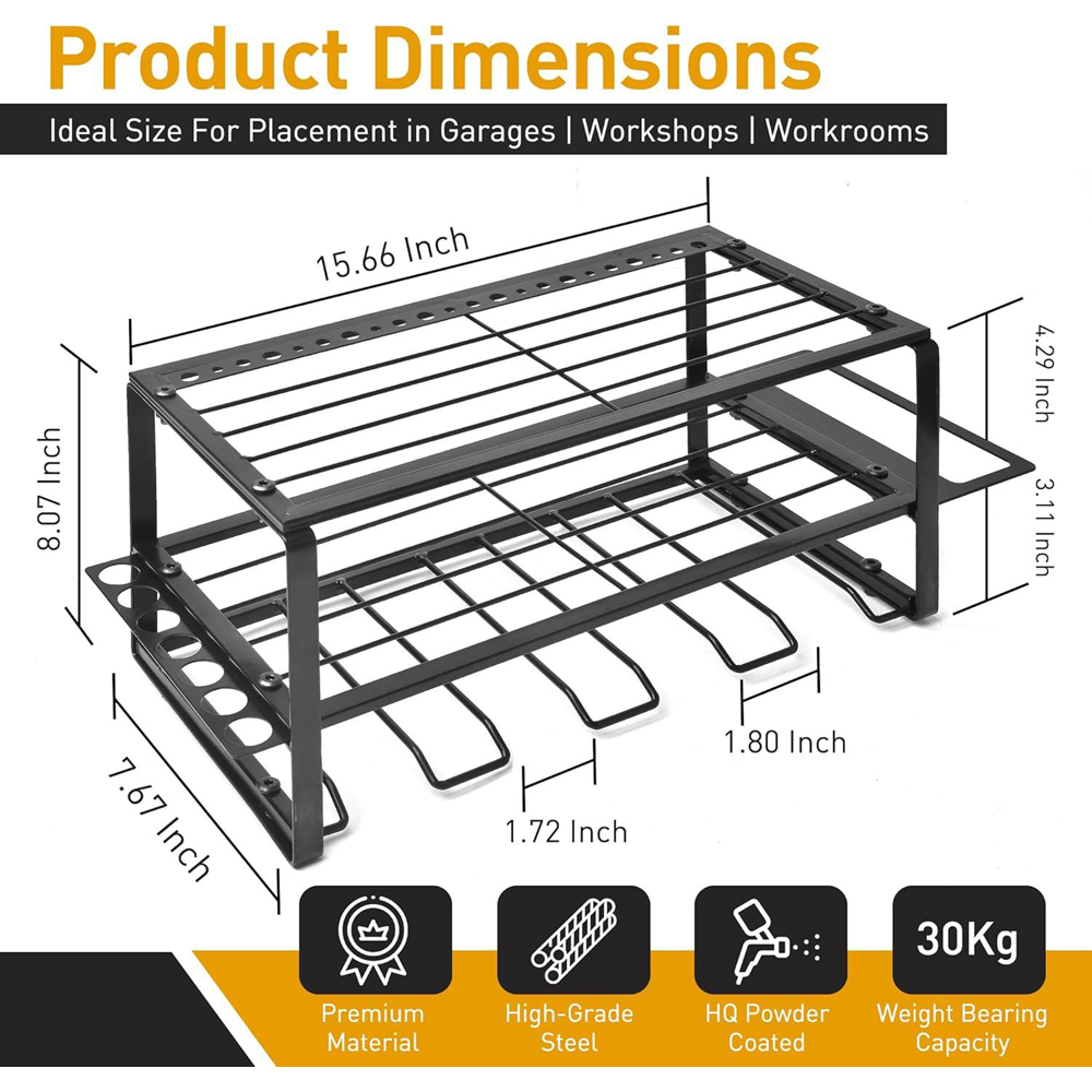 Dyzi Power Tool Organizer Wall Mount Alloy Steel Black Storage Rack
