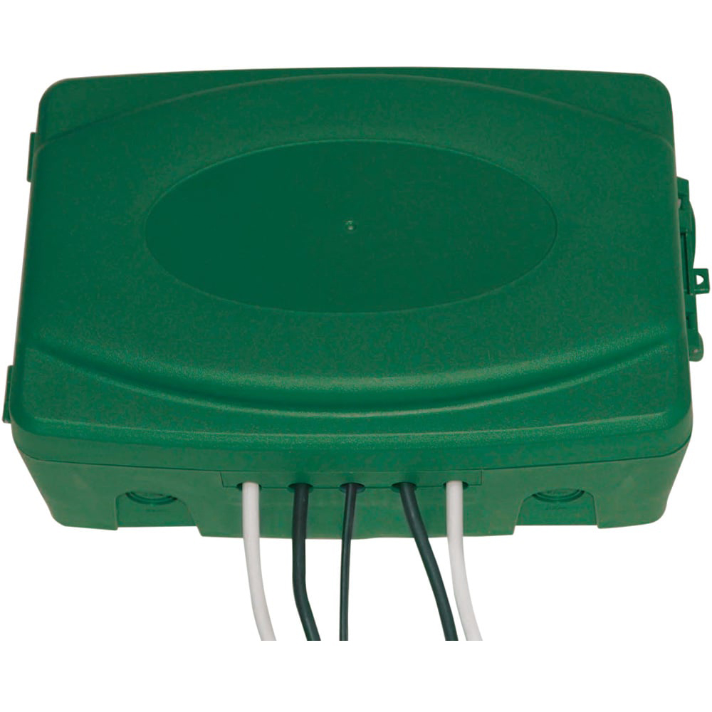 Keep your outdoor electrical connections safe and secure with this IP54-rated weatherproof box. Ideal for gardens and patios, it easily houses multiple outdoor connections—extension reels, cords, and up to four-way extension leads, including transformers and timers—reducing the risk of dirt, dust, and electrical hazards. Its simple hinged locking system keeps everything secure, while its sturdy plastic construction ensures lightweight portability. Perfect for managing excess cabling and powering tools from hedge trimmers to lawnmowers to outdoor lighting, this box offers a simple yet effective solution for a variety of outdoor electrical applications. With space for up to four plugs and one extension lead, it's the ultimate safe solution for multiple connections.