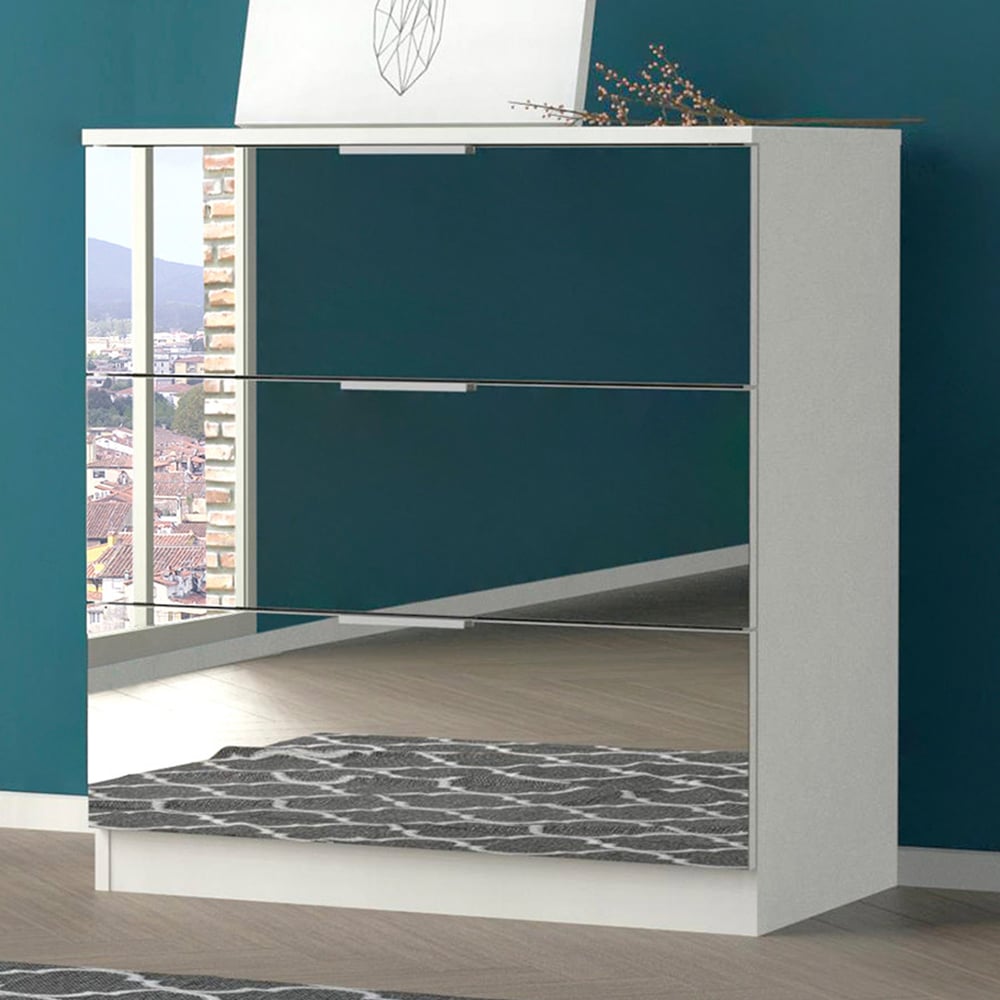Echo 3 Drawer Mirror Front White Wide Chest of Drawers