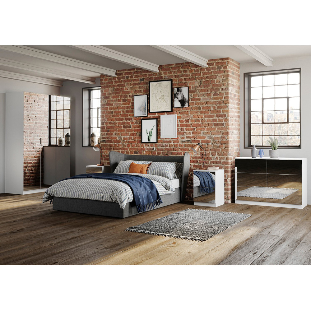 Ample storage meets modern style in the Echo Mirrored Six Drawer Wide Chest. Its sleek matte white finish and six spacious drawers, equipped with smooth-gliding metal drawer slides, make organizing your clothing a breeze. This versatile chest complements diverse décor styles, ensuring a tidy and stylish bedroom.