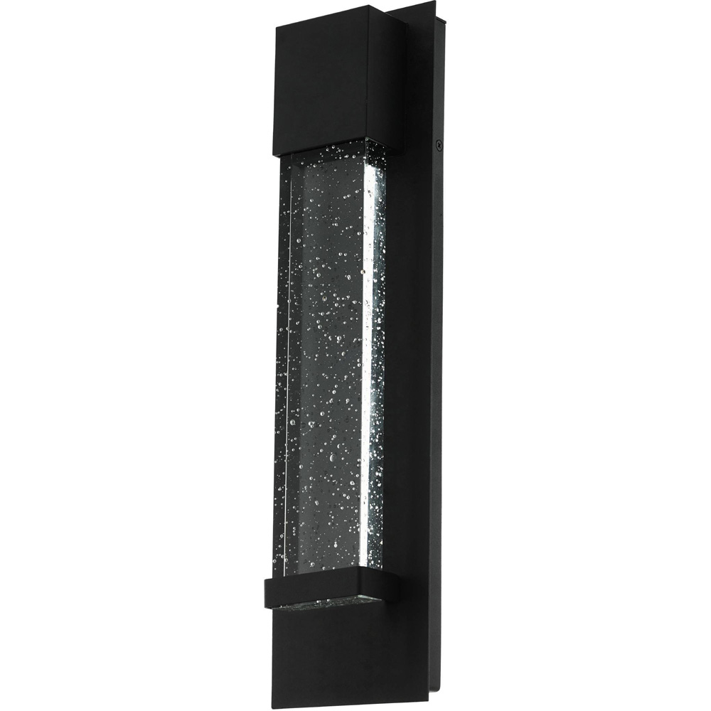 The Villagrazia is a contemporary exterior wall light, boasting a rectangular black aluminium body. A clear glass panel, featuring distinctive air bubbles, adds a modern touch. Integrated LEDs provide warm white illumination, creating a welcoming ambiance. Its IP44 rating ensures weather resistance, making it perfect for patios, gardens, or entrances. This stylish light enhances any outdoor space with elegant illumination.
