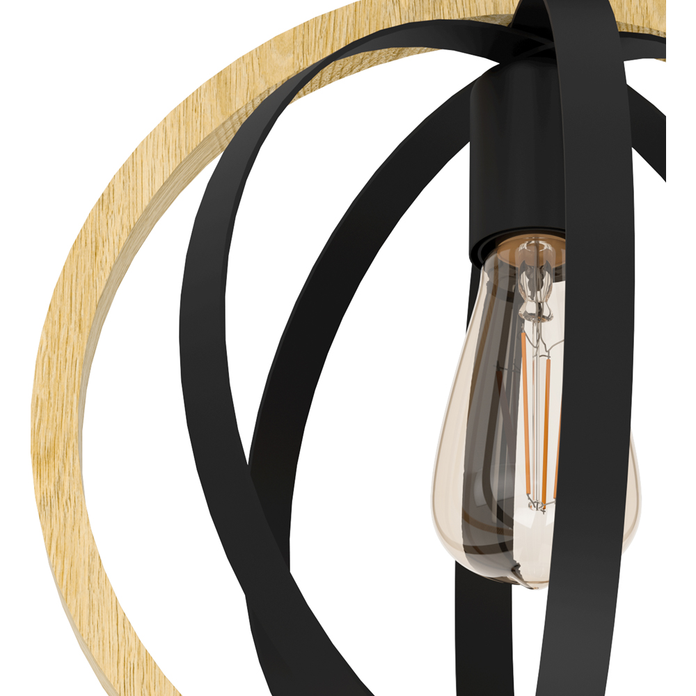 EGLO Basildon Black Steel and Wood Modern Ceiling Light