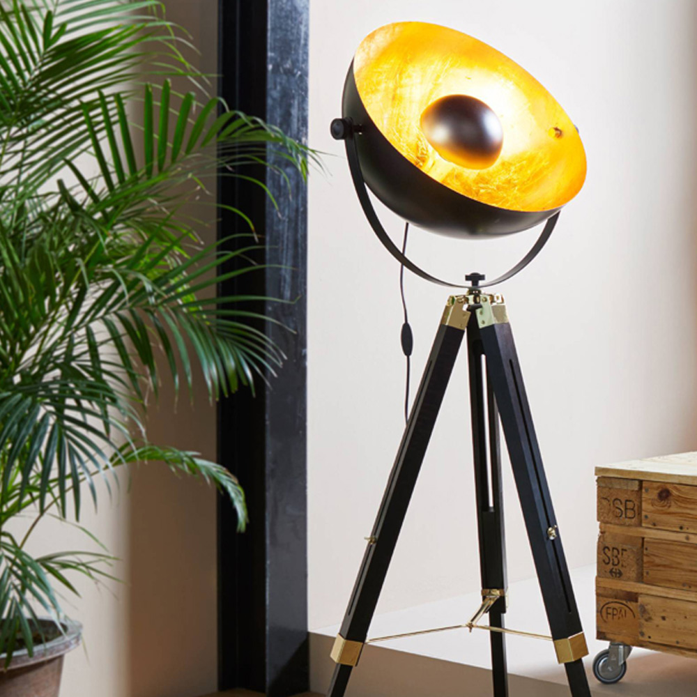 Add a touch of glamour to your living space with the EGLO Covaleda Black/Gold Floor Lamp. This height-adjustable floor lamp features a sleek black wooden tripod base for stability and elegance. The striking round lampshade pivots, showcasing a black steel exterior and a luxurious gold interior. A central hemispherical black metal panel softly diffuses light, creating a warm and inviting atmosphere. Conveniently switch the lamp on and off with the in-line switch. Ideal for bedrooms, living rooms, and dining rooms, this durable lamp boasts an IP20 rating. Constructed from a blend of wood and steel, it's built to last. Simply add your choice of E27 lightbulb (not included).