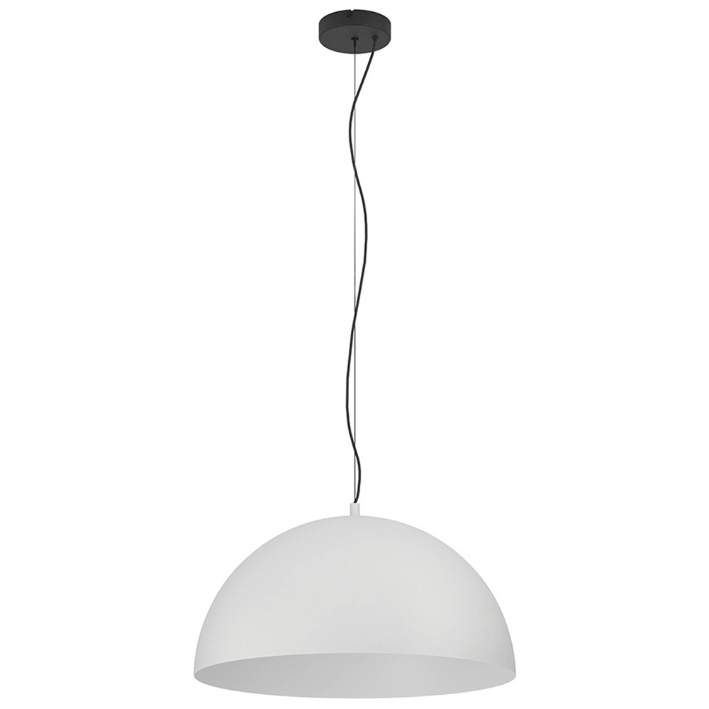 The EGLO Gaetano 1 pendant light features a striking grey metal lampshade with a large dome design and a white inner finish. Suspended from a black ceiling mount and stylish textile cable, its versatile design complements a range of interior styles. The 50cm diameter shade makes it ideal above a dining table or kitchen island. This pendant light uses an E27 lamp holder and requires an E27 lightbulb (not included). Size: H1500 x D535mm.