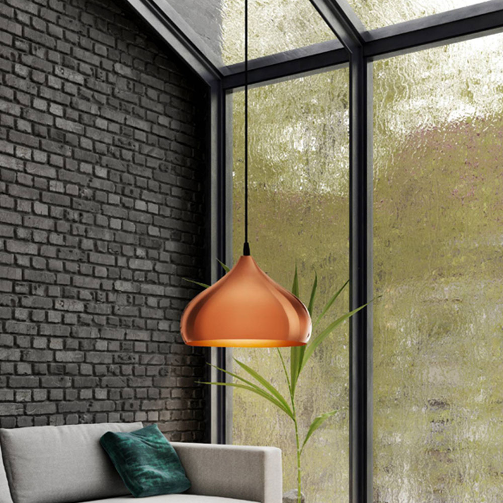 The Hapton Pendant Light exudes sophistication with its stunning copper-coloured finish, making it a striking addition to any home. This single pendant features a rounded shade, beautifully designed with a vintage-inspired aesthetic. Ideal for enhancing the ambiance in kitchens or dining areas, it effortlessly adds a touch of metallic elegance. The fitting requires an E27 lightbulb, allowing you to customize your lighting experience. For your convenience, you can explore our selection of compatible lightbulbs.