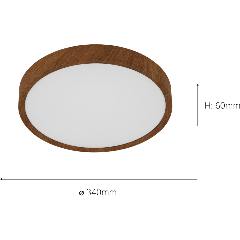 The EGLO Musurita LED flush ceiling light features a natural wood-effect finish and a white plastic diffuser. Its integrated LEDs emit a warm, eye-soothing light, adding a touch of natural style to any room. Perfect for homes and offices with low ceilings, its compact design makes it an ideal solution for smaller spaces.