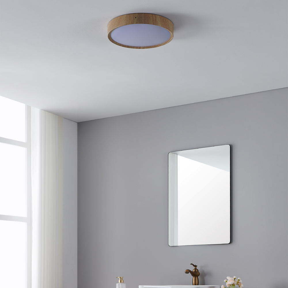 The EGLO Musurita LED ceiling light brightens any room with its stylish blend of natural wood effect and sleek white plastic diffuser. Integrated LEDs cast a warm, inviting glow, perfect for living rooms, bedrooms, or offices. Its minimalist design and high-quality materials make it a statement piece, while its suitability for low ceilings adds practicality.