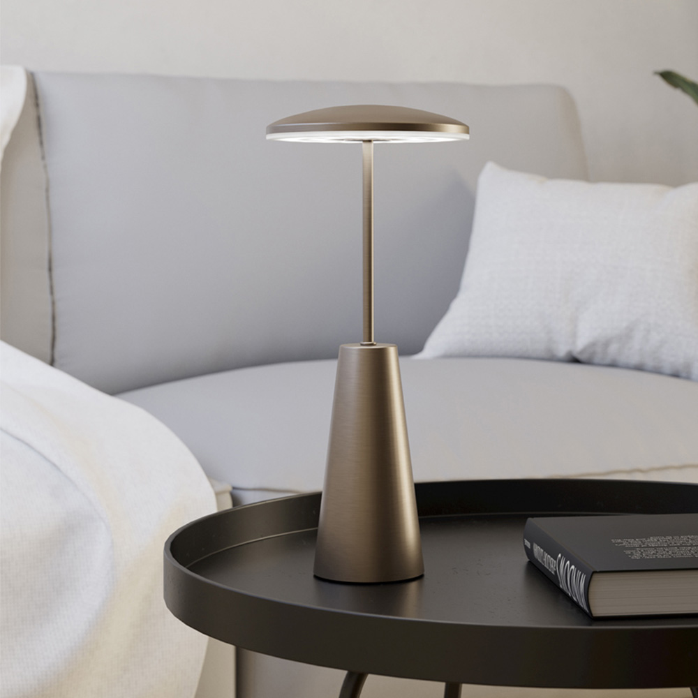 Elevate your space with the Eglo Piccola Bronze Table Lamp. Its sleek steel body, finished in brushed brass, effortlessly complements any décor. Enjoy the flexibility of adjustable tuneable white light from the integrated LEDs, easily controlled by the touch dimmer. Conveniently charge your devices with the integrated USB port. Designed for both indoor and outdoor use (IP45 splash-proof), this lamp stands 280mm tall with a 130mm diameter (70mm base) and weighs 0.78kg. Features include Protection Class 3, 5V DC operation, a touch dimmer switch, and an integrated 2600mAh Li-ion battery.