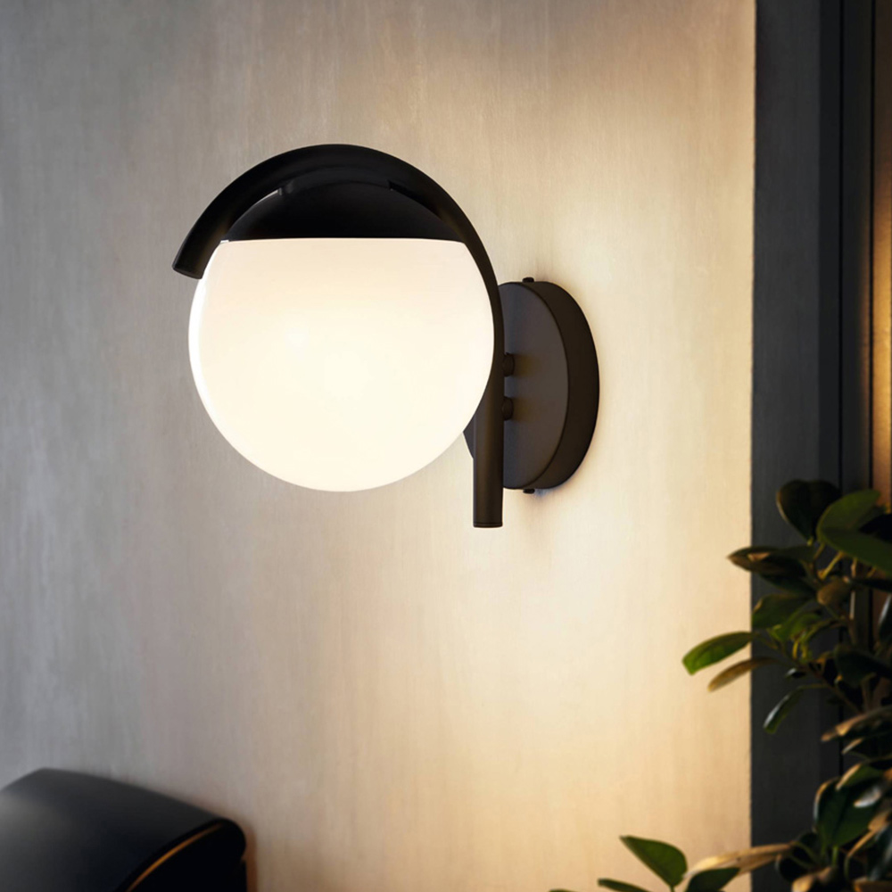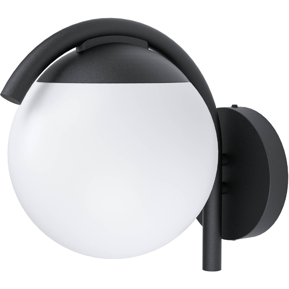Elevate your outdoor spaces with the Prata Vecchia Exterior Wall Light. Its striking design features a spherical white plastic shade complemented by a sleek, black arched metal frame. Rated IP44 for splash-proof protection, this light is perfectly suited for contemporary outdoor settings, adding style to walls, entrances, or terraces. It has an E27 lamp holder and awaits your choice of bulb (not included) to complete the look.