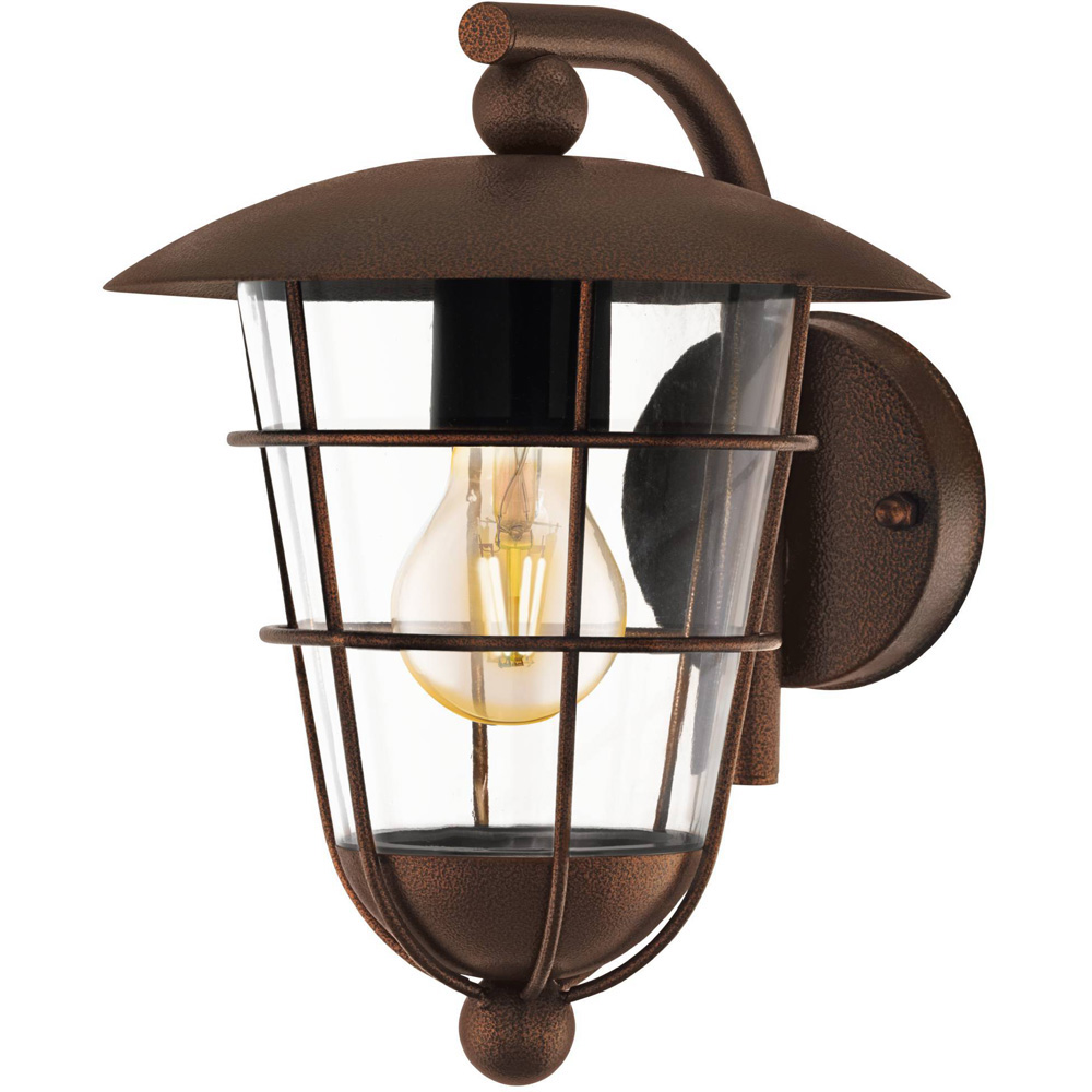 Enhance your home's exterior with the Pulfero Brown Exterior Wall Downlight. Its lantern style, crafted from antique brown zinc-plated metal, features translucent plastic panels that diffuse a warm glow. IP44 rated for spray water protection, it's perfectly suited for outdoor use. An E27 lamp holder (bulb not included) completes this classic design, effortlessly adding character to any façade.