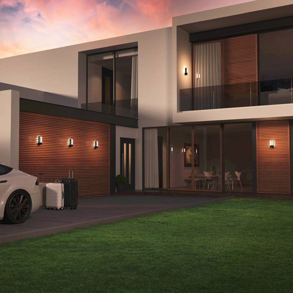 Enhance your outdoor space with the Riforano Exterior Wall Light with Sensor. This modern wall light features a sleek design with white plastic diffusers and a black cast aluminium body. Integrated LEDs provide a soft white light, creating a welcoming ambiance. The integrated sensor boasts a 120-degree detection angle and a 6-meter range, adding both security and style. Its angular shape complements contemporary and minimalist landscapes.