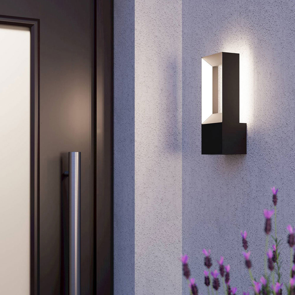 The Riforano is a stylish linear outdoor wall light with a black cast aluminium body. Its design incorporates diagonal white plastic panels housing integrated LEDs that emit a warm white light, ensuring optimal brightness and illumination. With an IP44 rating, it offers splash-proof protection against water and dust. Perfect for illuminating walkways, driveways, entrances, or terraces, this contemporary light enhances any outdoor space.