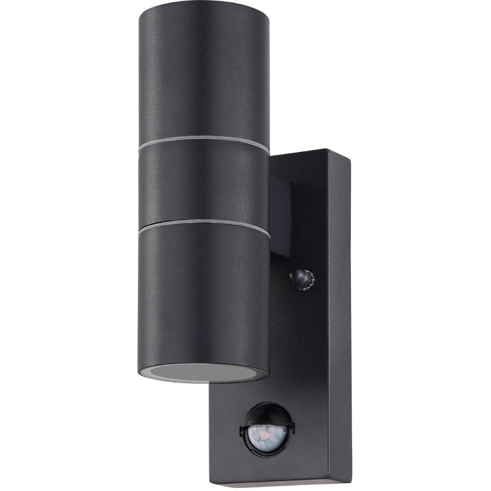Illuminate your outdoor spaces with the EGLO Riga5 2L LED Exterior Wall Light with Sensor, a sleek and modern wall light designed for both style and functionality. Its slender cylindrical form, finished in anthracite zinc-plated steel, offers a sophisticated touch. Two light sources, powered by GU10-LED bulbs (not included), create a warm and inviting ambiance. Rated IP44 for weather resistance, this corner-mount light is perfect for outdoor use. A wide-angle sensor with a long detection range adds convenience and security to your evenings.